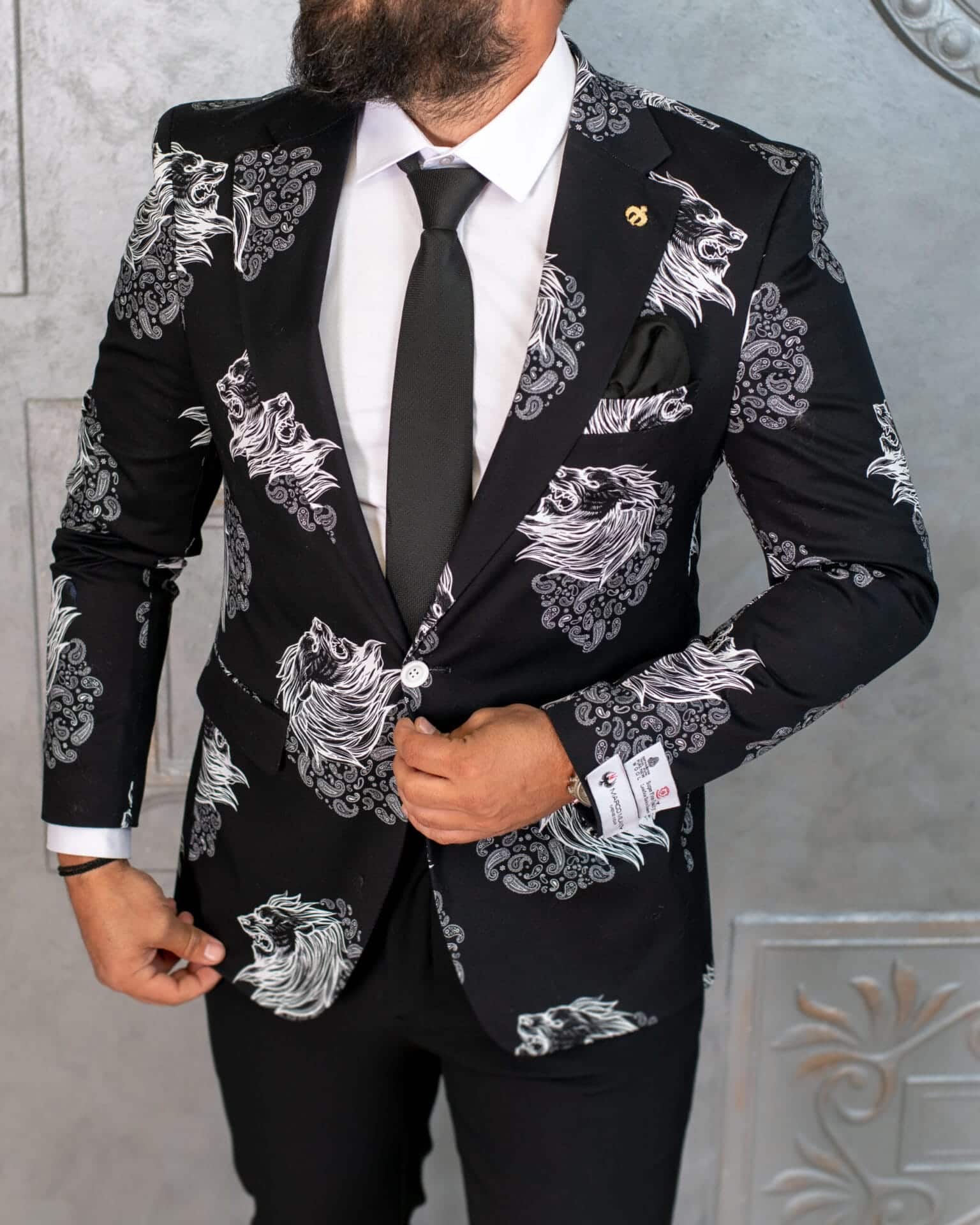 2 recenzii pentru Sacou LOT-06 slim negru cu imprimeu